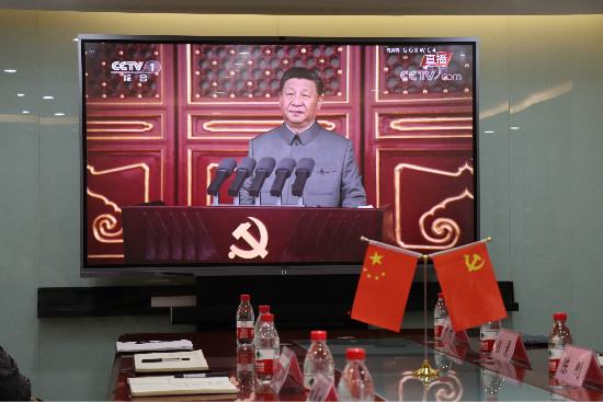 7月1日上午8時,廬陽科創(chuàng)集團組織集團及子公司員工在會議室收聽收看習近平總書記在慶祝中國共產(chǎn)黨成立100周年大會上重要講話現(xiàn)場直播。