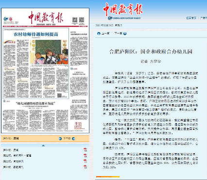 近日,《中國(guó)教育報(bào)》頭版刊登了合肥廬陽(yáng)區(qū)國(guó)企和政府合辦幼兒園——安徽合肥廬陽(yáng)學(xué)前教育集團(tuán)的報(bào)道。